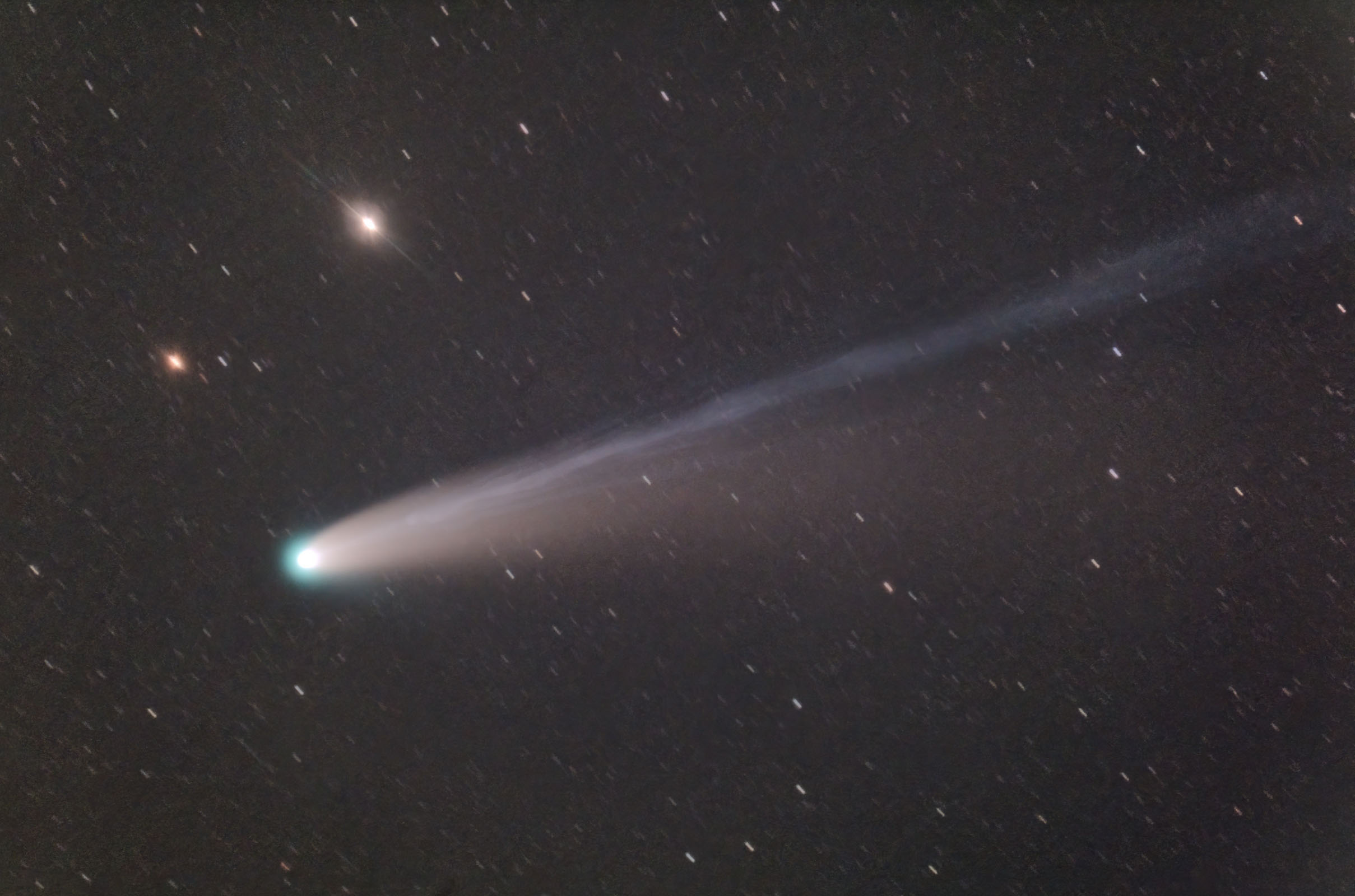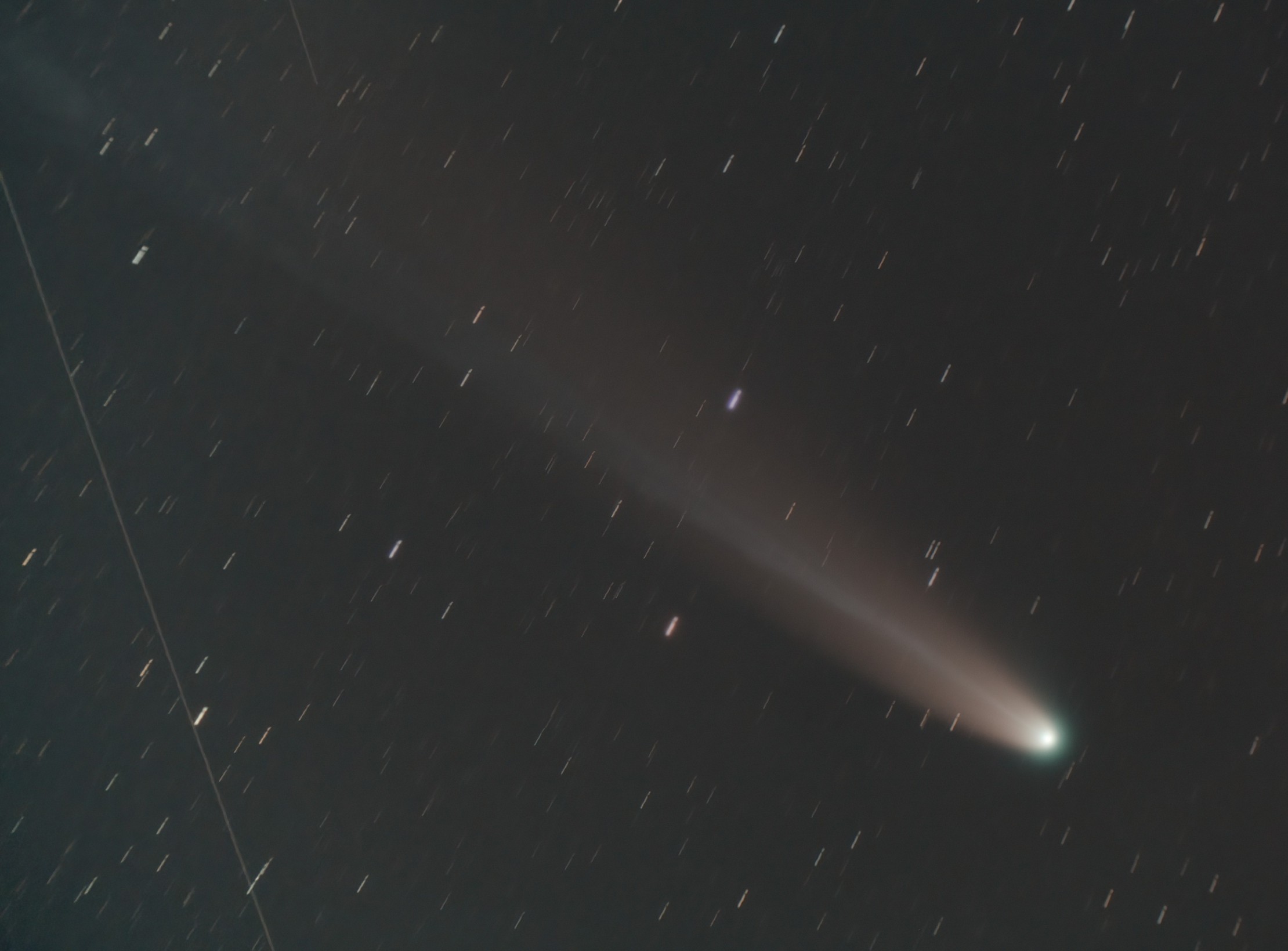 低空だったのと薄明の影響か、写野の端まで尾が伸びている様子は炙り出せませんでした。。。