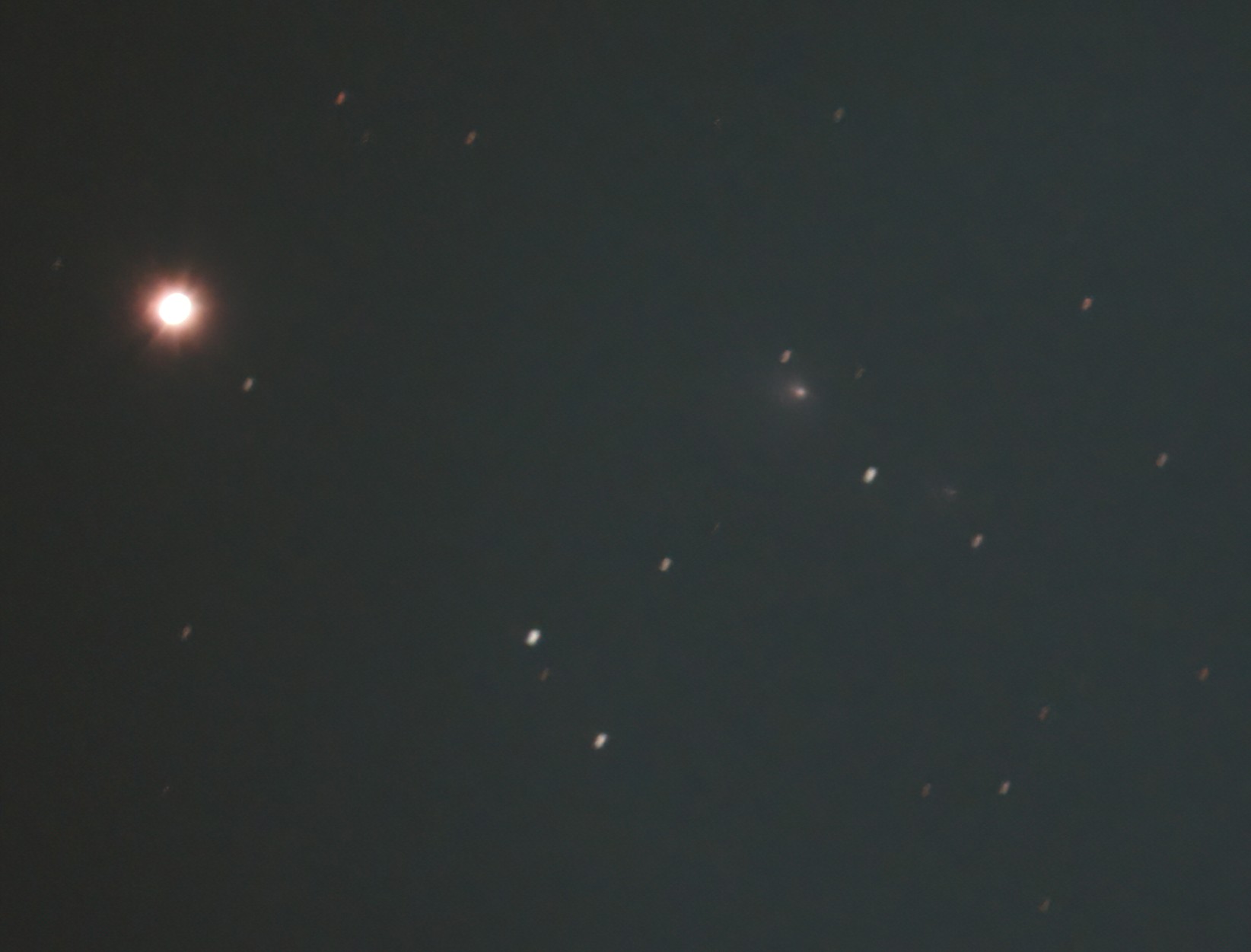 最初、分裂核Bの所在が分からなかったんですが、主核から結構離れた位置にある恒星状の天体なんですね。点像のため星と見間違えましたが、流れていないですもんね。